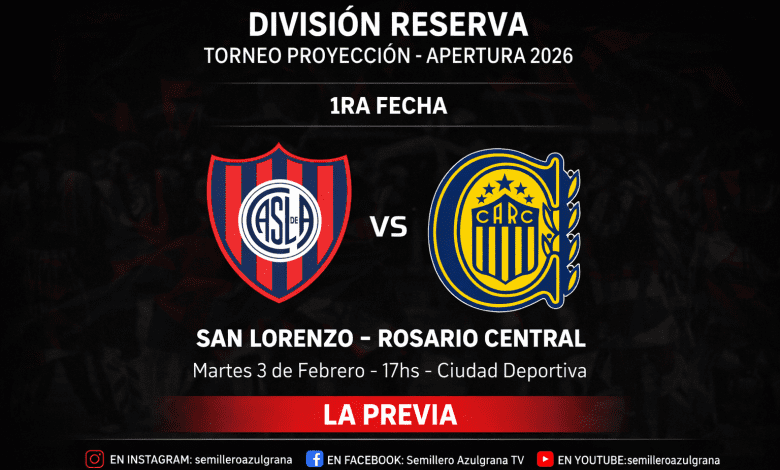 (Por Cristian Paladino) – El Torneo Proyección de División Reserva vuelve a escena y San Lorenzo de Almagro se prepara para abrir el Apertura 2026 con un estreno que invita a la ilusión y al análisis profundo. Este martes 3 de febrero, desde las 17.00, el Ciclón recibirá a Rosario Central en la cancha auxiliar de Ciudad Deportiva, en el marco de la Fecha 1 de la Zona A, con arbitraje de Pablo Gómez, acompañado por Juan Alexis Etchepare y Fabrizio Osorio como asistentes, y Rodrigo Amadeo como cuarto árbitro.